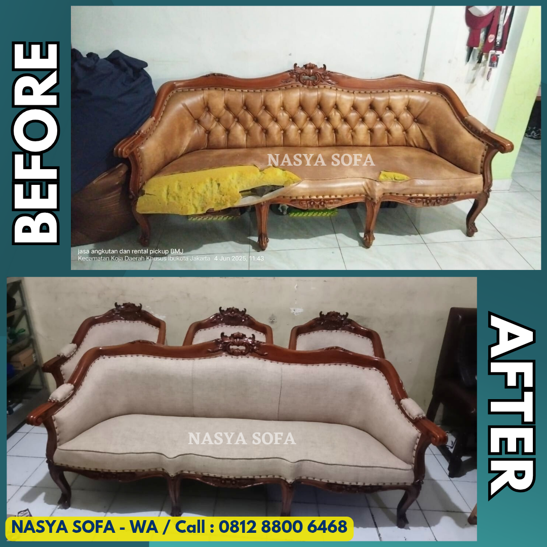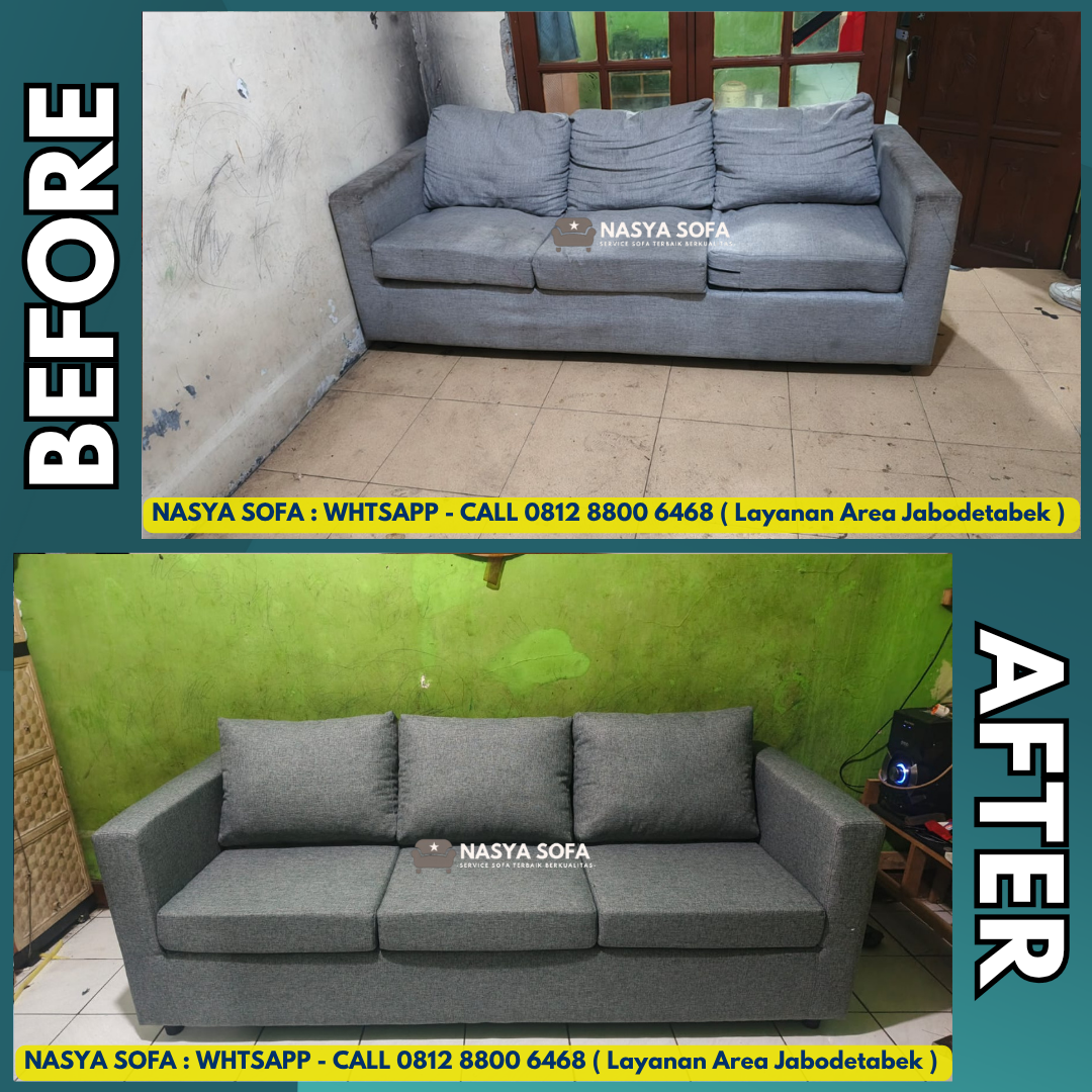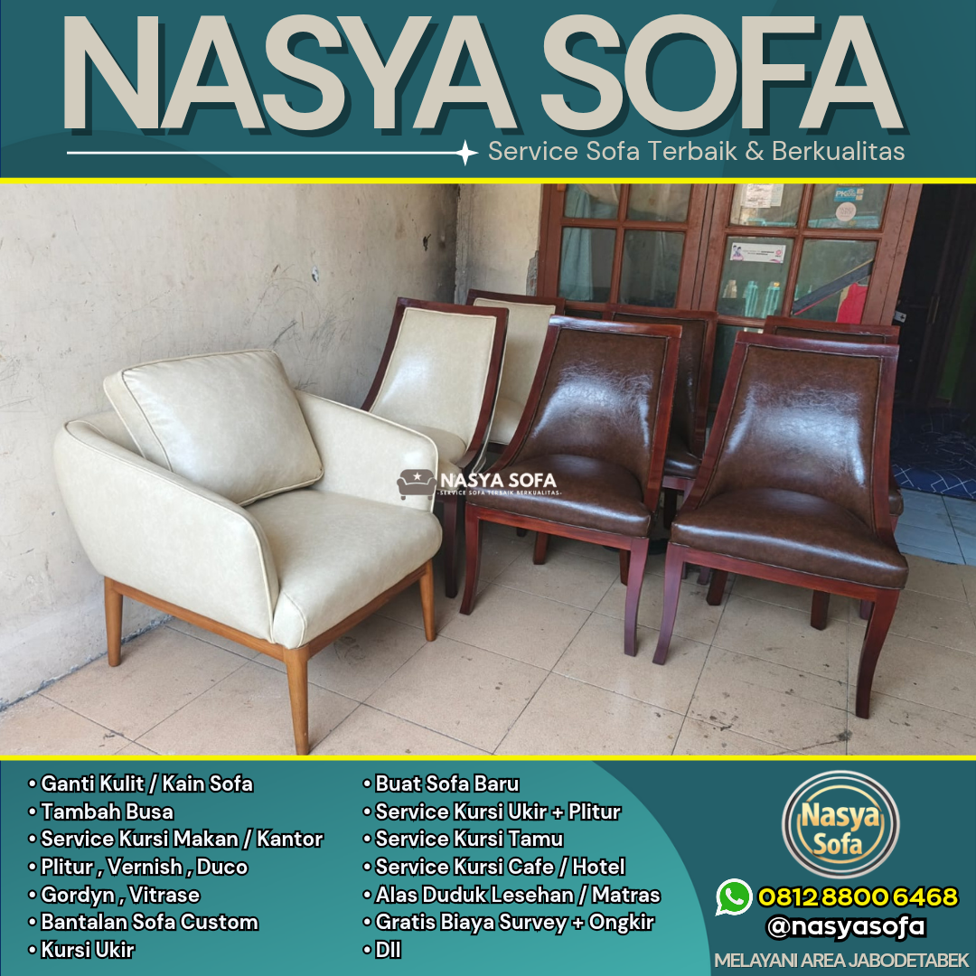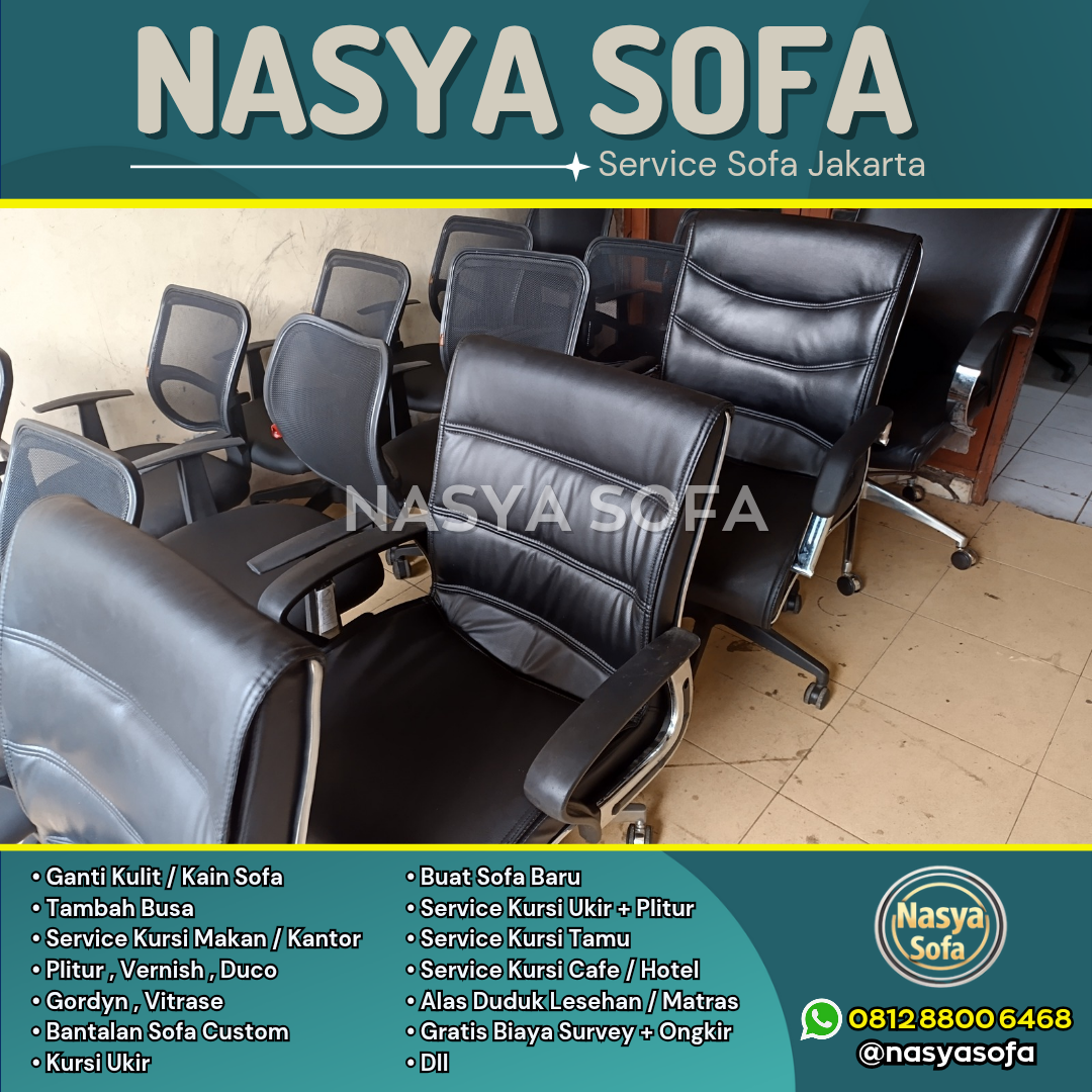Butuh service sofa terbaik di Jakarta? Nasya Sofa spesialis jasa ganti kain sofa dan jasa ganti kulit sofa dengan hasil seperti baru. Kami melayani perbaikan sofa dan reparasi sofa di seluruh wilayah Jakarta Pusat, Jakarta Selatan, Jakarta Barat, Jakarta Timur, dan Jakarta Utara, didukung material premium dan tim ahli berpengalaman.