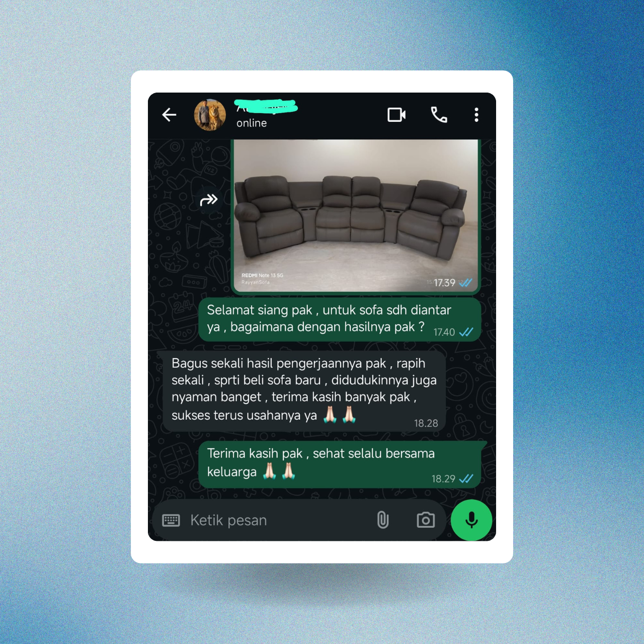 Menjadi penyedia layanan Service Sofa dan Pembuatan Sofa Baru terkemuka dan terpercaya di Indonesia, dikenal karena komitmen tak tertandingi terhadap kualitas material, keahlian profesional, dan hasil kerja yang melampaui ekspektasi pelanggan.